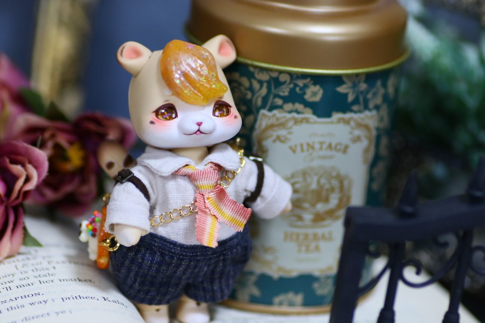 ハロウィンにぴったりなオレンジと紫の2カラーで制作しました。両目同じ色で揃えるのはもちろんのこと、ボタン中心のクロス留めの糸にそれぞれのカラーを使ってデザインしているため、左右別々の色を付けたオッドアイとしてご利用いただく場合も組み合わせがしやすいです。