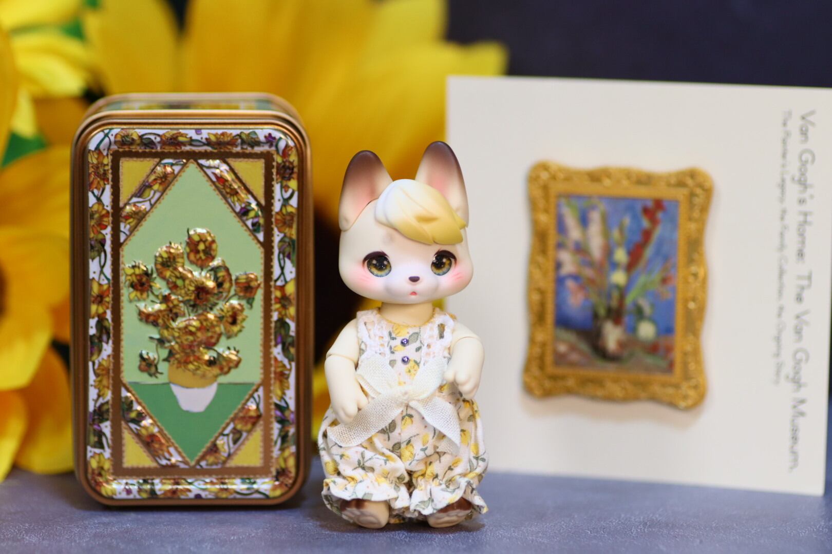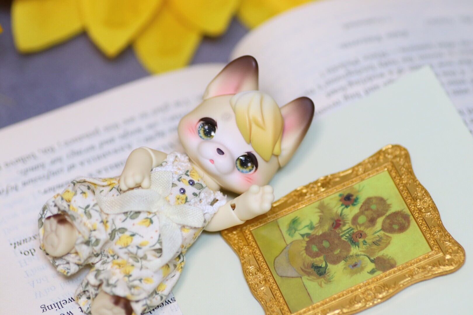 輝くお日様をイメージして、ゴールドの繊細なラメを散りばめました。瞳の中に大きな向日葵が咲いています。